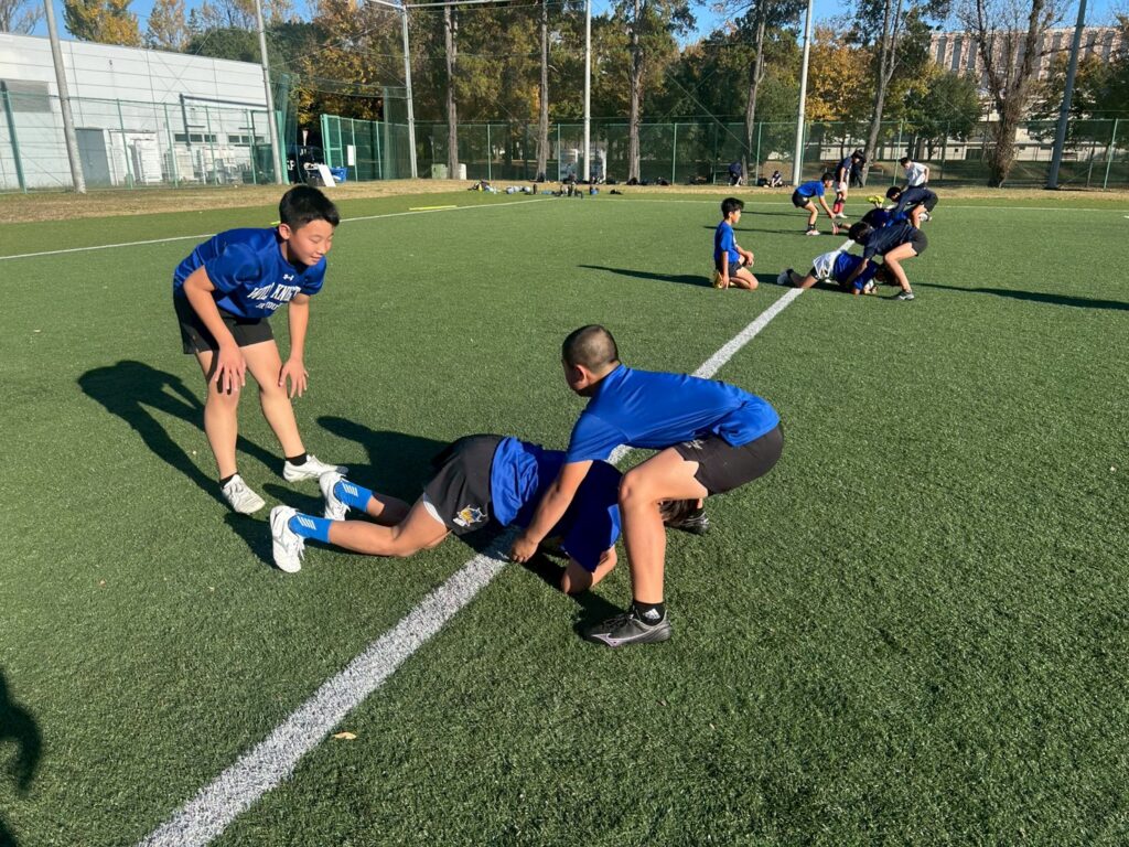 ふざけてやってるとは思いませんが、目的意識からまだまだ遠いところにある印象がありますので、タックル練習は特にスイッチを入れてください。