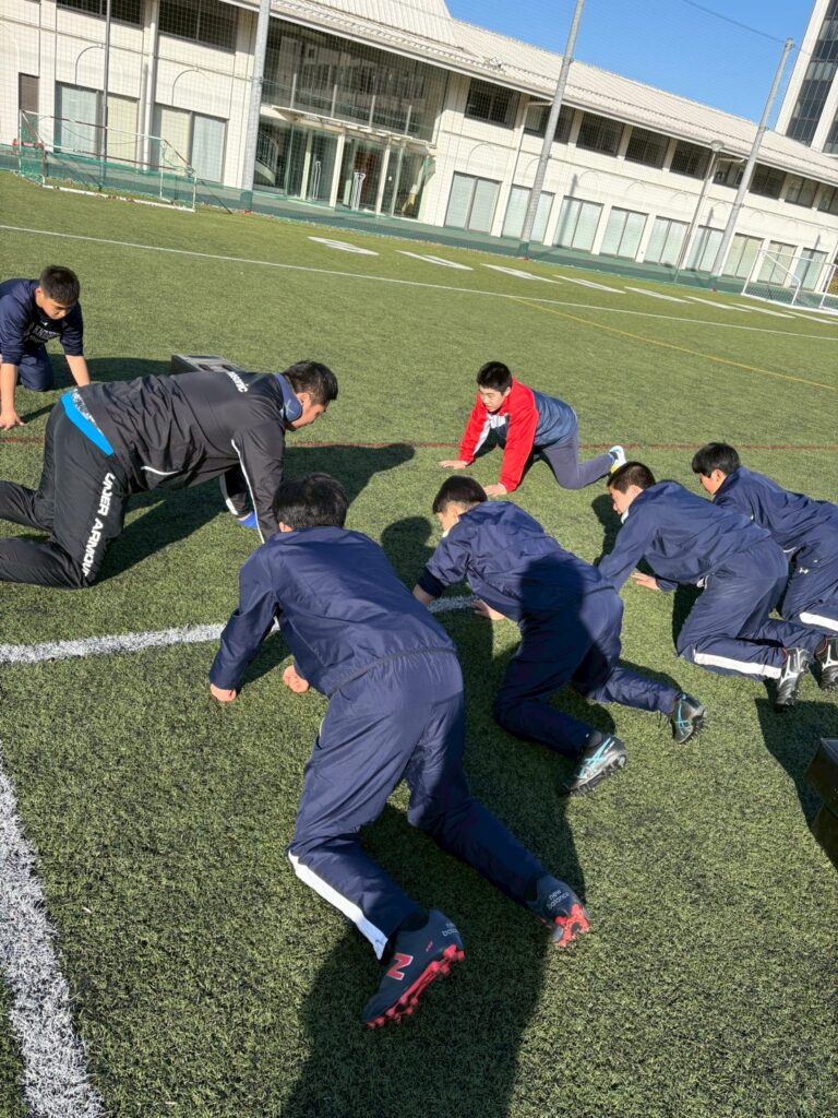 1つは、タックルに行く姿勢(気持ちの部分)が見れました。タックルするのにも正しいスキルがありますが、やはり体を張るという強い気持ちの部分も大切なことだと思います。その気持ちの部分を向上させるためにも練習から正しいスキルを行っていくことで試合でできるようになると思います。それがまた自信に変わり、思い切ったプレイができるようになってきます。練習から試合を想定して今後も行っていきましょう。